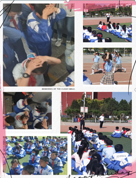 上午10点整,伴随着骤然响起的鸣笛声,防地震应急疏散演练活动正式开始。教师立即组织学生就地紧急避险,同学们迅速抱头或拿其他物品保护头颈部,蹲身躲在课桌下,然后全校1000余名师生全部按照指定的疏散路线,紧急有序地从教室撤离到操场中央空旷地带,用时3分15秒。演习过程,全校教师组织到位,保障有力,整个演练过程井然有序,无任何推挤或踩踏事故发生。