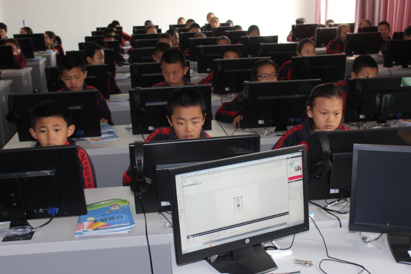 学校规模的不断扩大,到2017年2个计算机教室已经不能胜任三至六年级学生信息技术上课的需要了,学校又建成了一个云计算机教室,有61台计算机,及时解决了学生的上课需求问题。