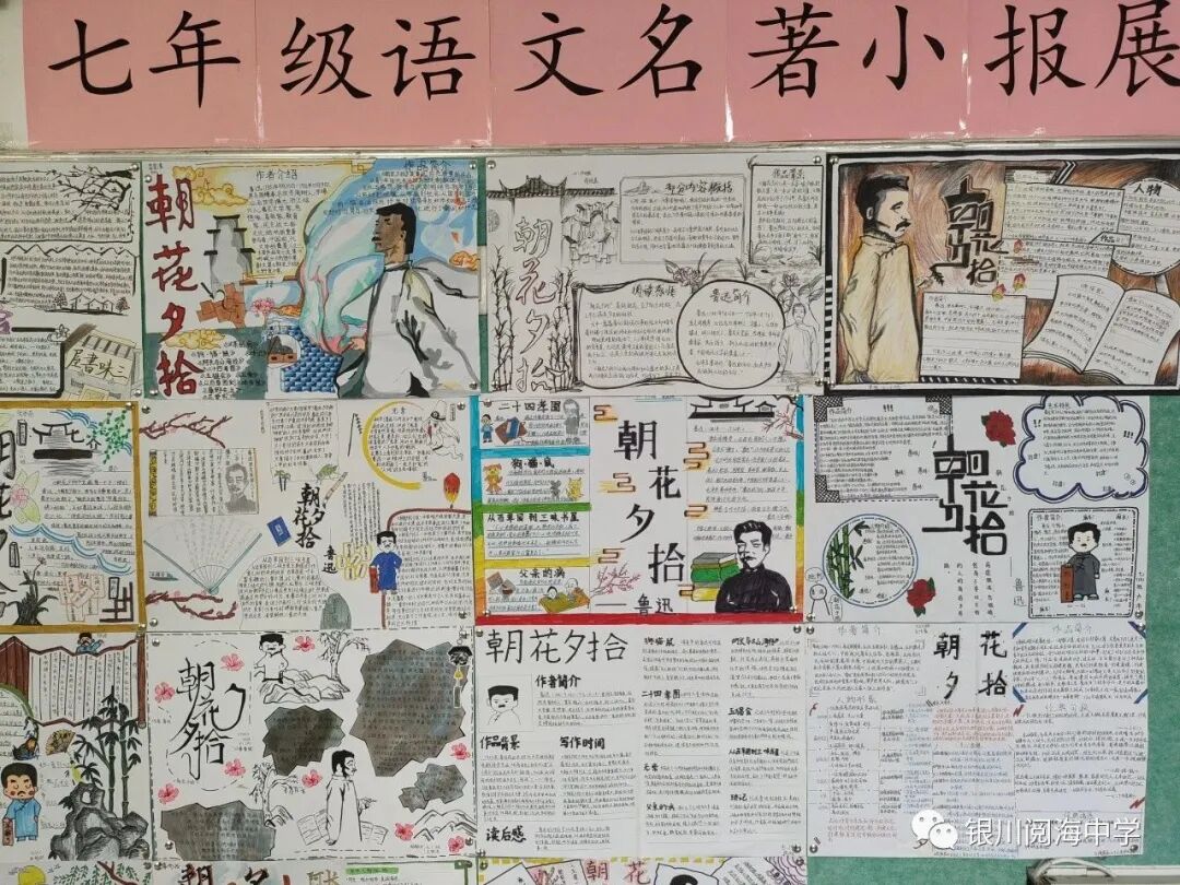 “腹有诗书气自华,最是书香能致远”。为培养学生读书习惯,丰富学生业余生活,激发学生阅读积极性,着眼学生终身发展,银川阅海中学举办了《朝花夕拾》手抄报绘制评比活动。本次活动由七年级语文备课组组长吴良良老师主持,语文教研组全体教师共同商议、开展。集思广益,精心策划开学伊始,七年级语文备课组集思广益,根据课程内容、学生情况及活动目的确定了读经典名著《朝花夕拾》的教学任务,拉近学生与鲁迅先生的距离、与经典的距离,消除与经典的隔膜。为更好地激发学生的阅读兴趣,有效检验学生的阅读成果,老师们商议并确定在十一假期期间开展《朝花夕拾》手抄报绘制评比活动,设置每班一等奖1人、二等奖3人、三等奖5—6人进行表彰奖励。
