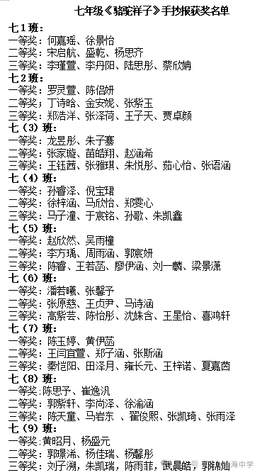 “腹有诗书气自华,最是书香能致远。”为营造书香校园氛围,落实“培养学生广泛的阅读兴趣,扩大阅读面,增加阅读量。提倡少做题、多读书、好读书、读好书、读整本的书”的新课程理念,激发学生课外阅读兴趣,养成良好的阅读习惯,在校园内形成热爱读书的良好风气,促进学生的全面发展,我校七年级语文备课组于2024年3月初开展“悦读名著·手绘书香”主题手抄报展示活动。读书开启心智,撼动心灵,丰富人生;读书积淀学识,激起思考,指点迷津。七年级语文教师组织学生进行了《骆驼祥子》整本书的阅读,学生根据自己的兴趣在阅读和鉴赏后,从主要内容、人物性格、主题思想、人物关系等多方面进行思考与梳理,从版面布局、文字书写、色彩搭配、总体效果等方面巧妙构思,精心制作阅读小报。每班评选一等奖2人、二等奖3人、三等奖5人进行表彰奖励。