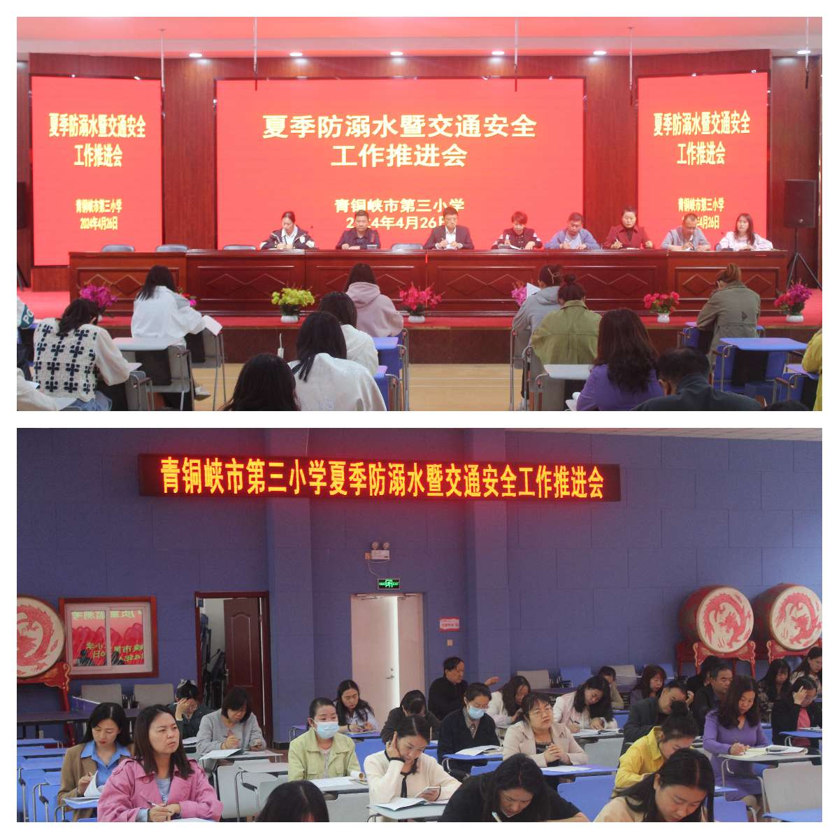 4月26日,学校组织召开夏季防溺水交通安全推进会,时刻把安全放在首位。