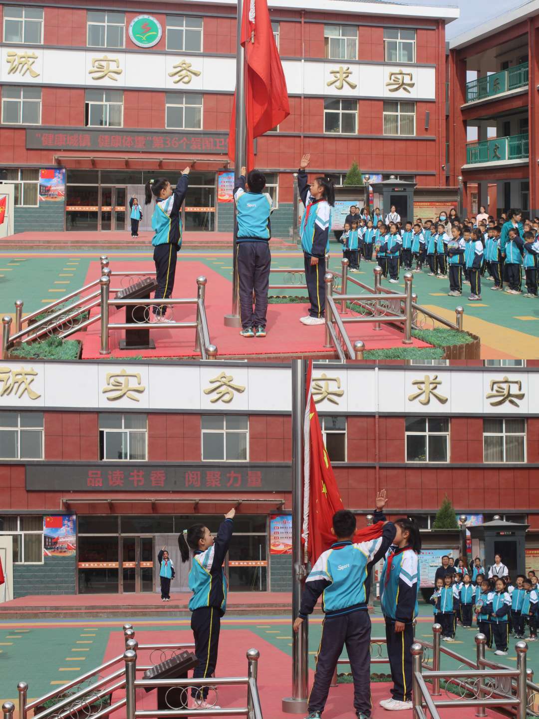 德育教育在细微处,学生成长在活动中。4月22日,市三小举行“健康城镇 健康体重”第36个爱国卫生月和“品读书香 阅聚力量”主题升旗仪式。