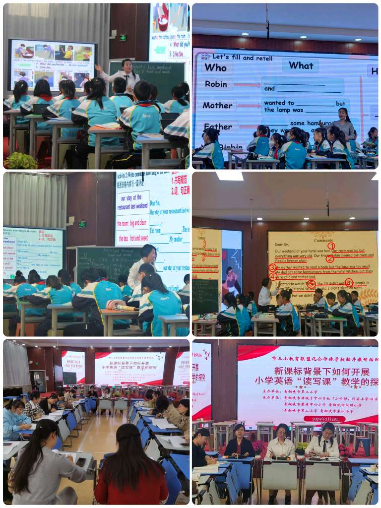 青铜峡市第三小学教育联盟化合作体学校齐聚一堂,共同探究新课标背景下如何开展小学英语“读写课”的教学,构建高效课堂,提高毕业班英语课堂教学效率,促进英语教师专业化成长。