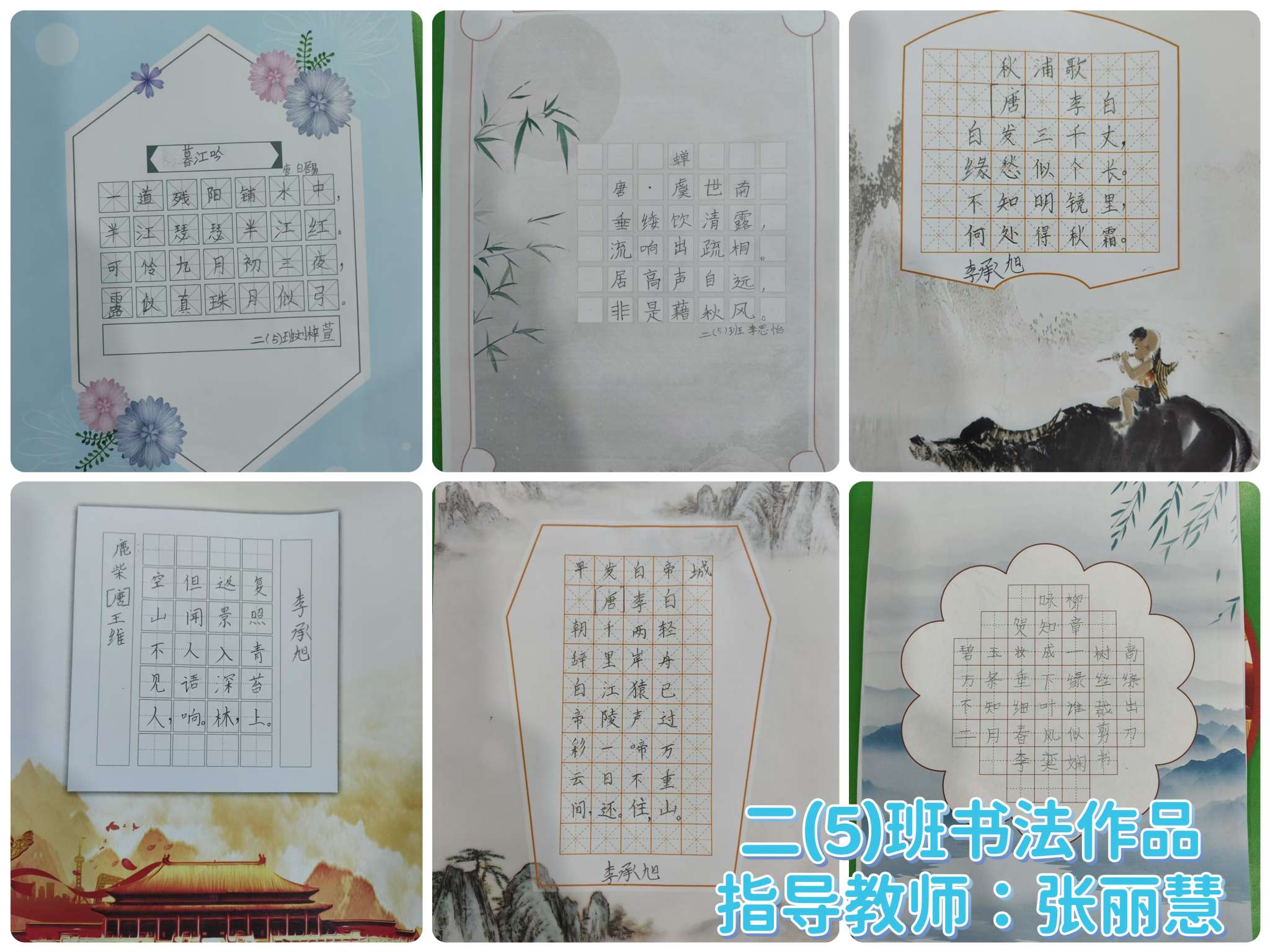书法作品,二(5)班,指导教师:张丽慧