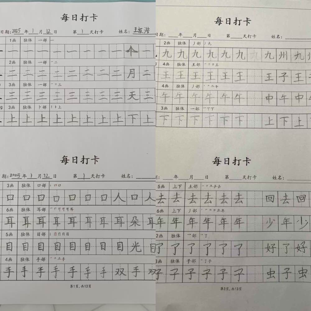 文字作为人类文明的基石,承载着历史和文化的重要使命,写好字也是对文化的传承和弘扬。一横一竖、一撇一捺,尽显千年文化底蕴。写一手好字,就能感受汉字独特的韵味与魅力。练字的过程可以培养人的耐心、细心和良好的心态。看着一年级孩子们写下的字,仿佛看到他们探索世界的勇敢脚印。笔画间是他们努力学习的见证,每一个不那么规整的形状,都藏着大大的梦想 。