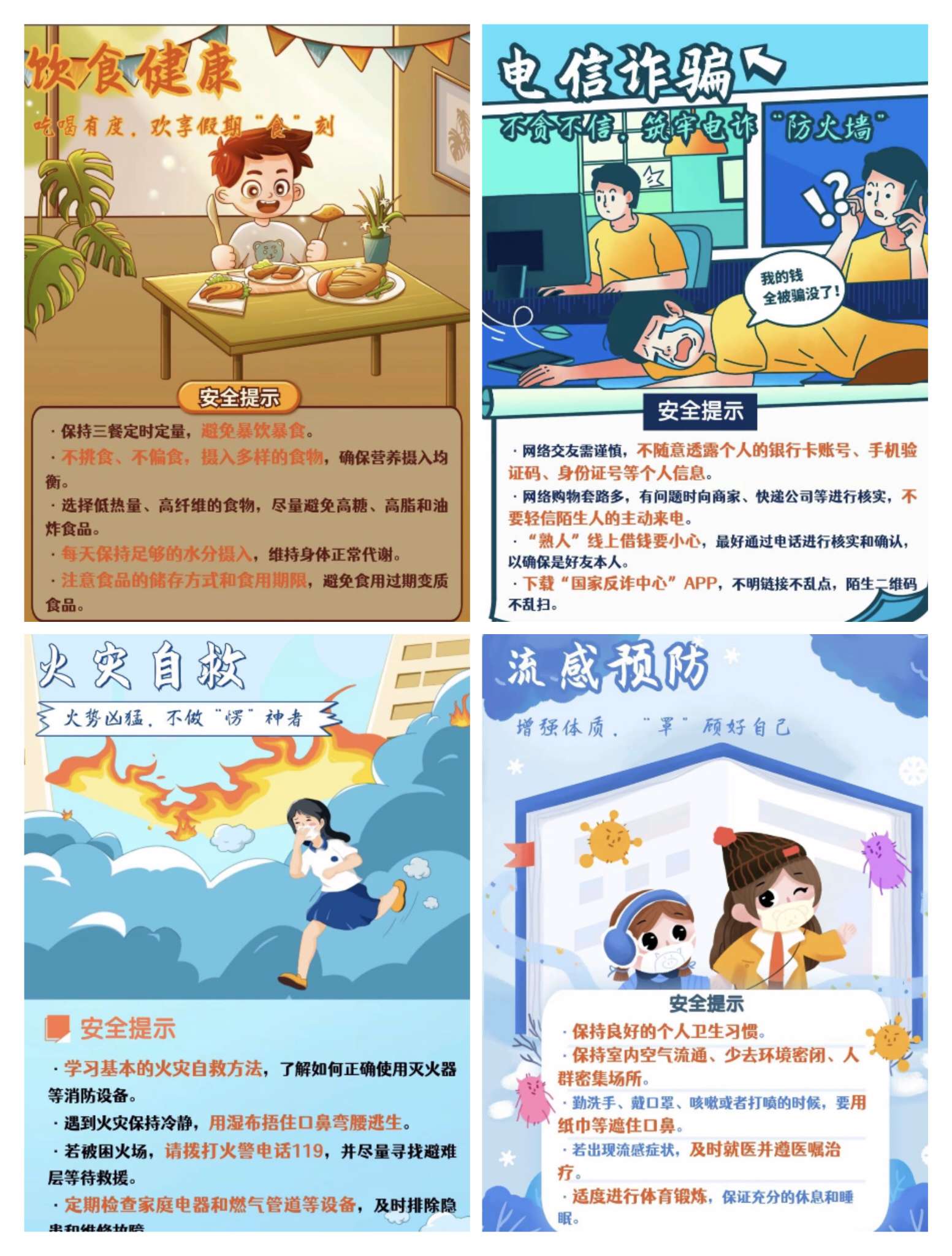 2. 防电诈:陌生电话不轻信,涉及钱财多核实,不随意透露个人信息,不点击不明链接。