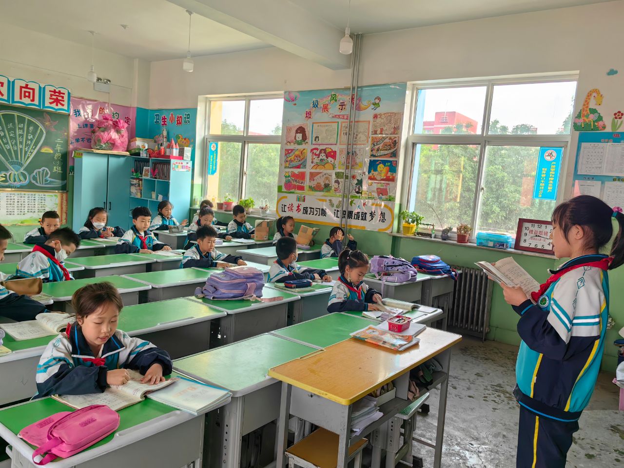 清晨“小老师”积极组织先到校的学生晨读,显得有模有样。