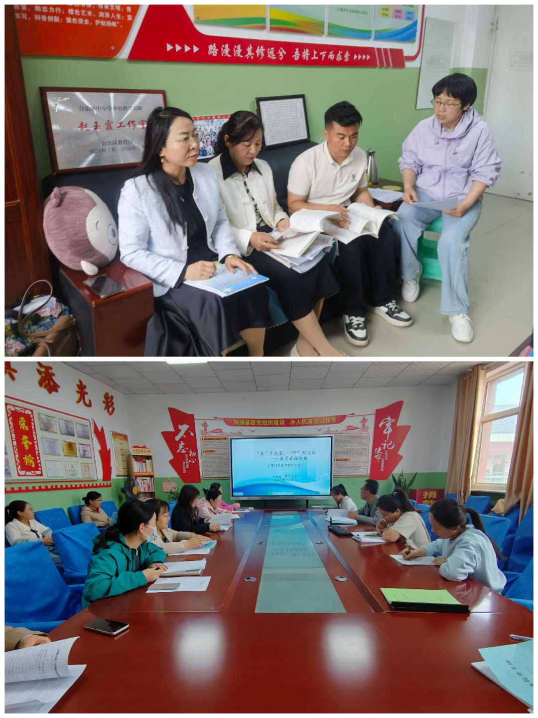 教研之风与"四课"评比热潮交织涌动。学科组里,老师们围绕新课标展开热烈研讨,从单元教学设计到课堂评价策略,字字斟酌、句句打磨;录播室中,参赛教师精心打磨每一堂课,将教研成果转化为生动实践,或创设情境激发思维,或分层教学因材施教。听课团队细致观察、精准点评,在互学互鉴中碰撞智慧火花。教、学、评双轮驱动,为提升教学质量、培育骨干教师注入强劲动能。