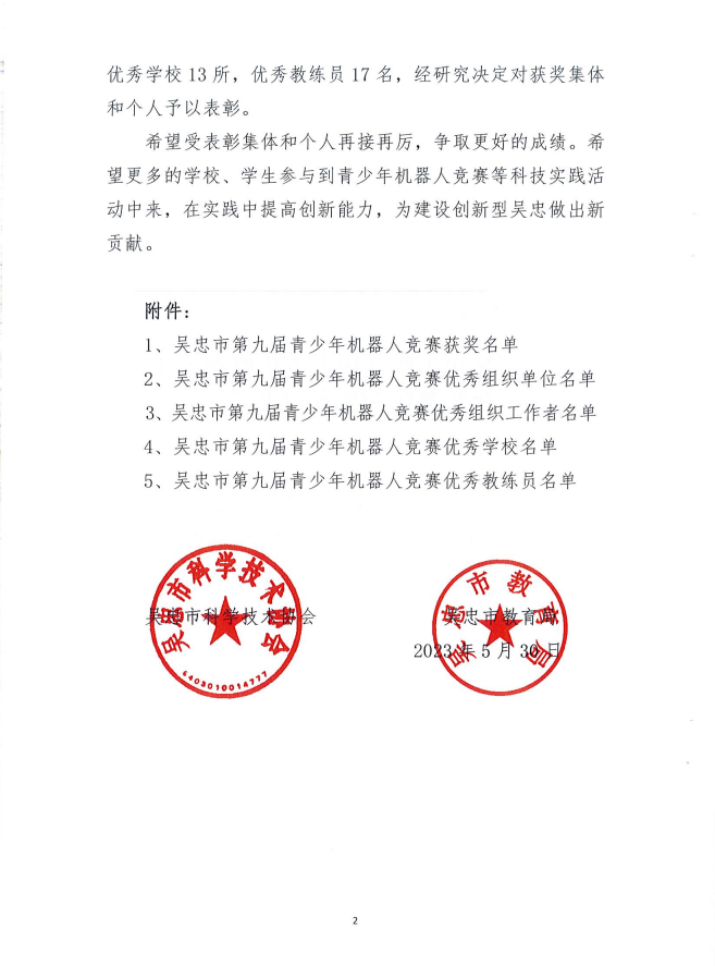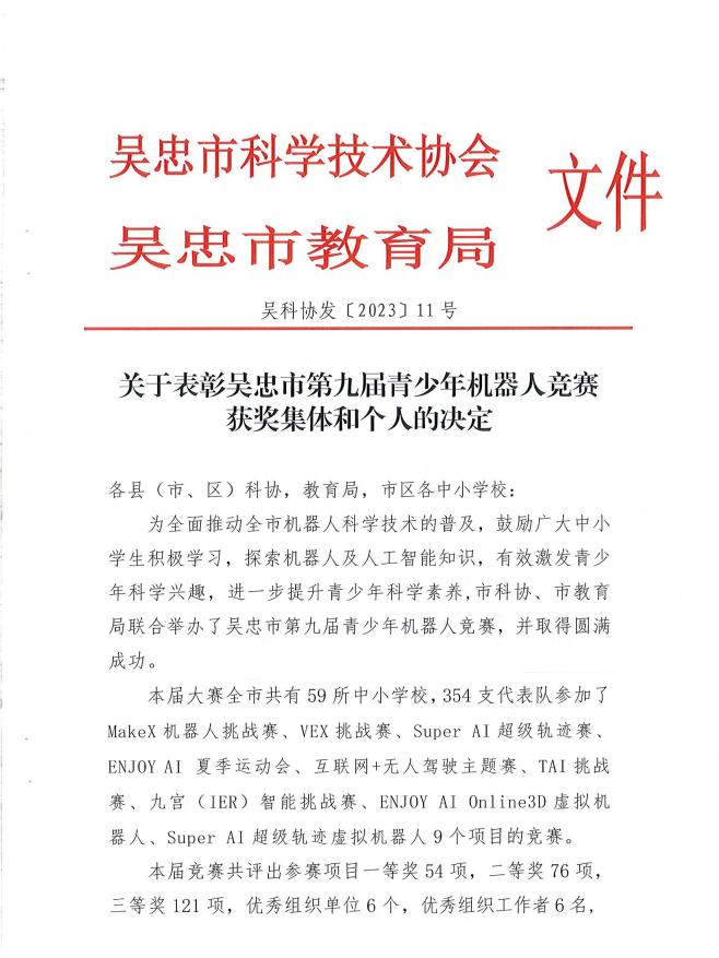关于表彰第九届青少年机器人竞赛获奖集体和个人的决定.pdf
