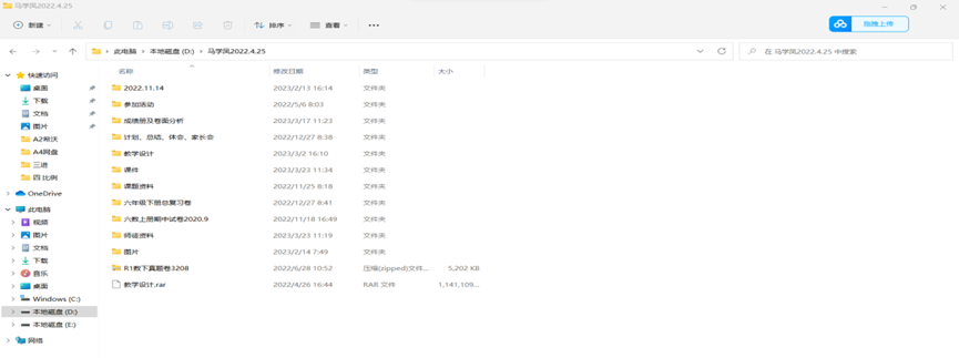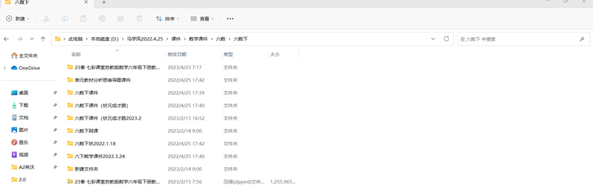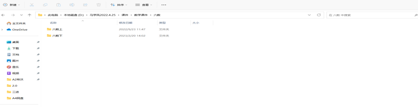 为了方便查找资源,教学资源应按照教学需要和便用习惯,根据一定的规则命名,有序分类存储。在平时的教育教学中,我积累了一些教学资源,为了以后能快速找到自己想用的资源,在我的电脑D盘中,我对六年级数学教学资源进行了分类整理。