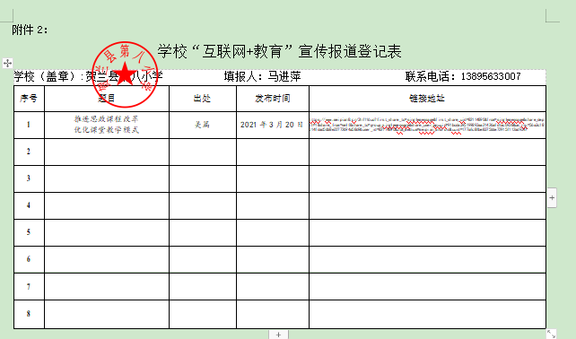 学校(盖章):贺兰县第八小学 填报人:马进萍 联系电话:13895633007