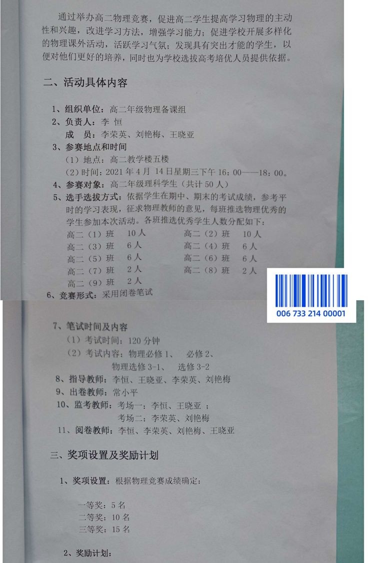 为了营造学生浓厚的物理学习氛围,激发学生的物理学习兴趣,让学生在学习中体会乐趣、加深体验、获得成长培养学生竞争意识培养学生动手动脑实验能力解决问题的实践能力,也为了履行本学期物理教研组工作计划,因此,高二物理组计划在4月14日举行一次物理学科知识竞赛。