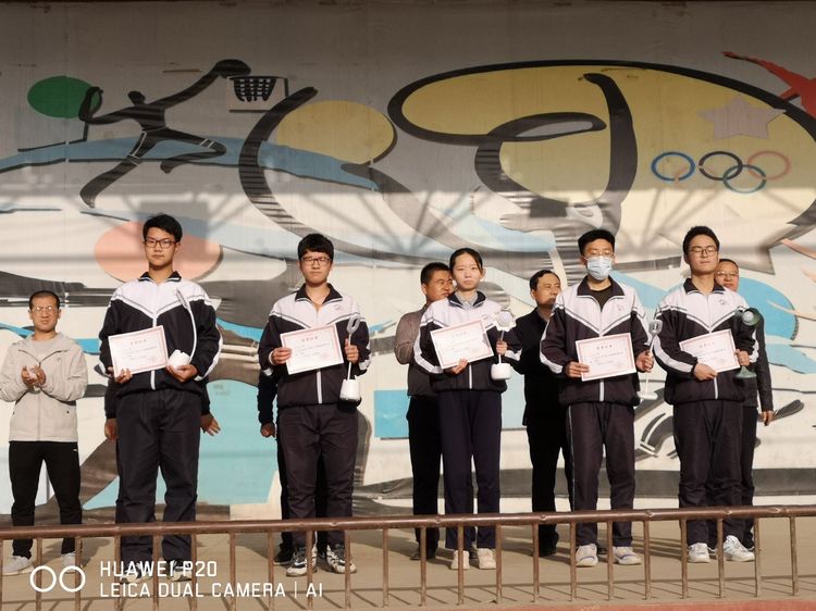 4月22日,在校领导的大力支持下,颁奖仪式拉开了帷幕。同学们集中在操场主席台前,为30名获奖选手颁奖。