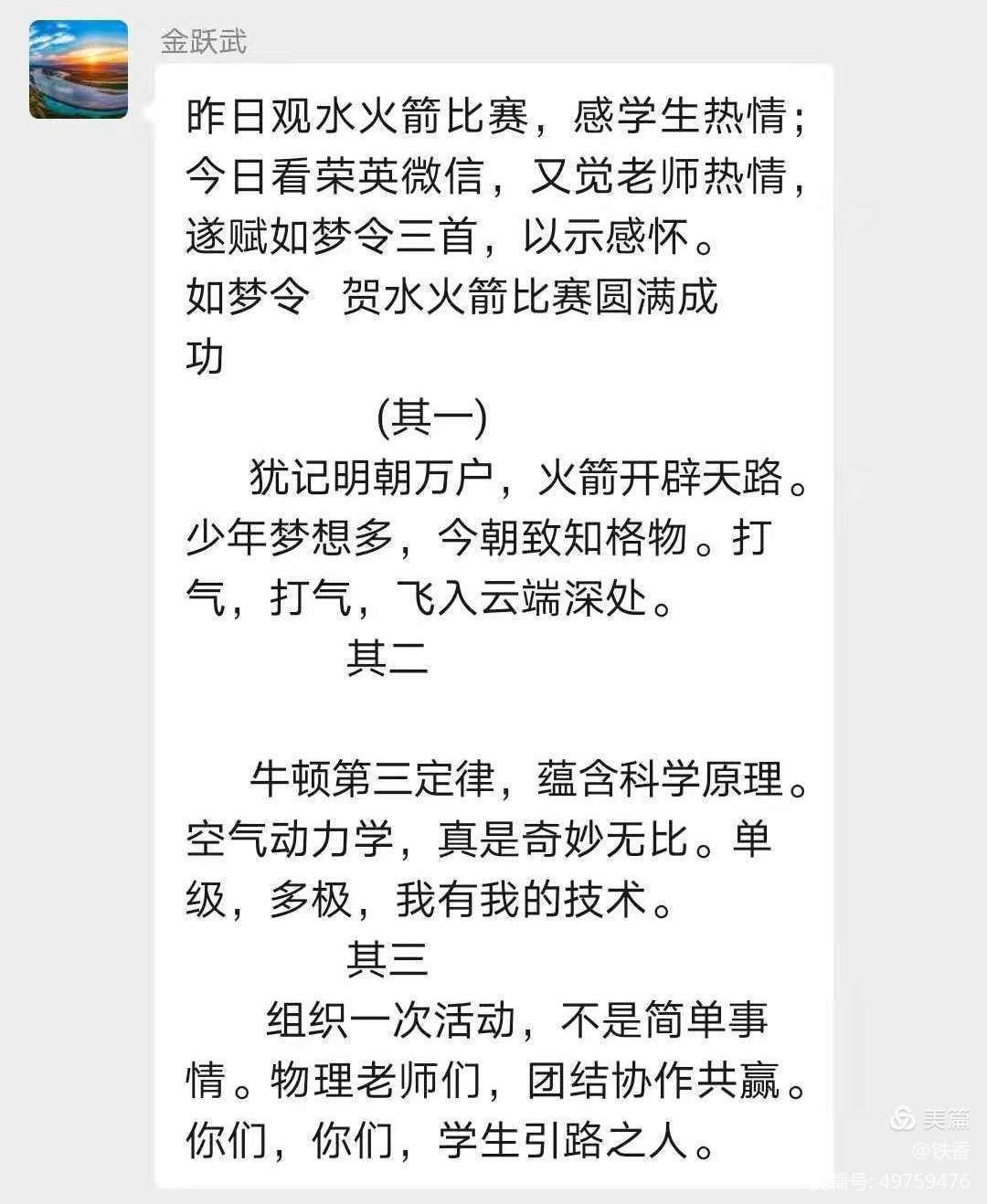 虽然这只是一只小小的水火箭,但是它所代表的合作精神,探索精神,创新精神将伴随着同学们继续前行。相信在未来的求知道路上,同学们会百尺竿头更进一步!