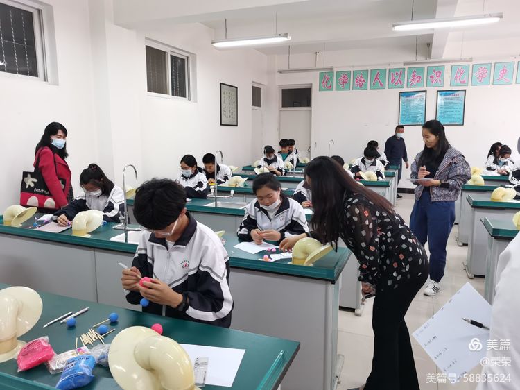 寓教于乐启思维,模型创新美校园。为了丰富校园文化生活,提升高中生对有机物分子结构、晶体模型、空间构型的理解,着眼于提高学生的化学学科素养,提高学生们的动手能力。青铜峡市高级中学(吴忠中学分校)化学教研组,高一化学备课组经过精心准备、有序组织,于5月11日下午第九节课在化学实验室开展了高一化学第二课堂甲烷模型制作比赛。