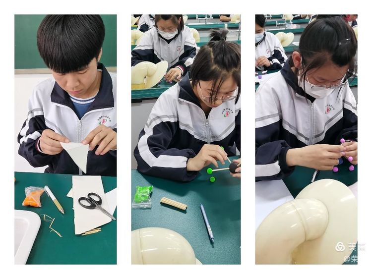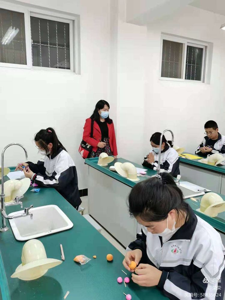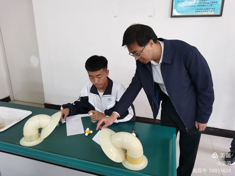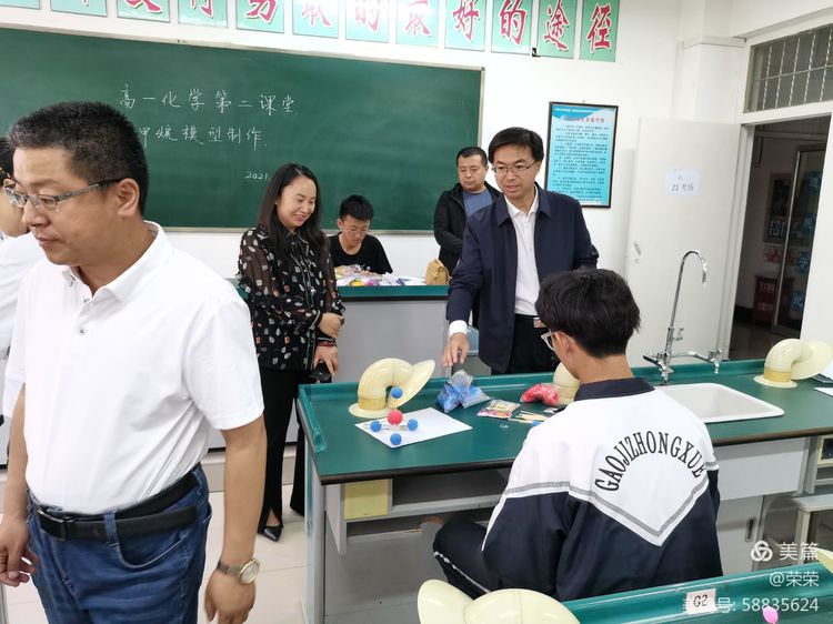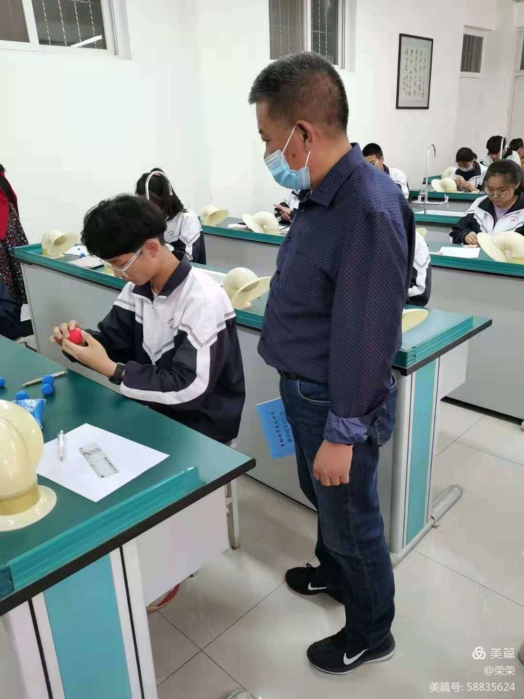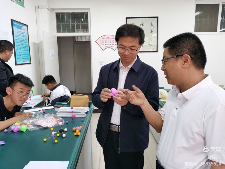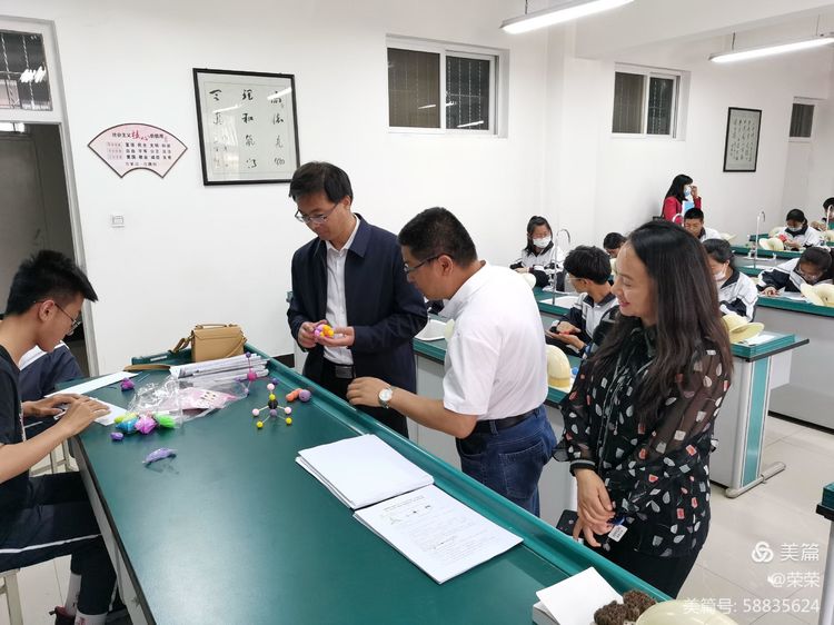 戚劼校长对学生已经制作好的模型产生了浓厚的兴趣,同刘彦龙老师、马淑霞主任探讨甲烷的球棍模型、比例模型的制作过程,对学生制作的模型提出表扬!戚劼校长对学生制作化学模型给予肯定,也给出了更好的建议,同时也希望制作的模型教具能够呈现出来,供大家参考学习、落到实处,用到需要处。