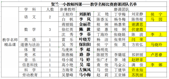 贺兰县第一小学新入职教师及教学名师参加贺兰县四课比赛磨课安排