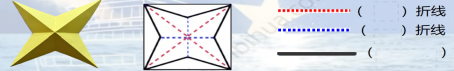 小结:折叠是制作纸浮雕最基本也是最常用的方法。红色的地方凸出来了,叫凸折线;蓝色的地方凹进去了,我们叫它凹折线;黑色的是要被剪掉的,我们叫它裁切线。 小组内交流达成测评连线 。(1分钟)