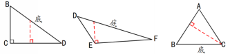 3.用字母表示三角形。 提问:为了表达方便,我们通常用3个大写字母来表示三角形的三个顶点,谁想要试一试?你能用字母来介绍这个三角形各部分的名称吗? 4.认识三角形底和高。 (1)创设情景,引出三角形的高。 瞧!两个三角形宝宝都想个吃树上的苹果,你觉得他们俩谁更容易摘到树上的苹果呢?为什么? 预设:我选第一个三角形,因为他比较高。 师:它有多高呢?请你上来指一指(指1名学生上台指一指) (2)尝试概括三角形高和底的概念。 (3)微课总结三角形高和底的概念。 5.画三角形单位高。 (1)学生独立尝试画锐角三角形指定底上的高。 (2)展示交流,汇报画法。 (3)微课演示,提炼方法。 (4)验证修改。 6.发现三角形有3条高,初步感知底和高的对应关系。 (1)创设情境发,发现三角形不止有1条高。 第一个宝宝获胜了,他高兴的又蹦又跳,这时3号宝宝很不服气来了,只见他一个空翻,哇,他变(高)了? (2)发现三角形的另外两条高。 (3)对答游戏,感受底和高的对应关系。 三、巩固练习,提高认识(7分钟)  (★★★)辨析:红色线段是三角形指定底上的高吗?如果不是,请改正过来。