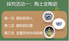 教学目标 | 1.在制作《陶土变陶瓷》宣传动画的情境中,学会使用任意变形工具调整图片的大小和位置;知道图片打散的意义;理解图层的含义,完成陶土变陶瓷宣传动画的任务,更好地传承和弘扬陶瓷文化。
