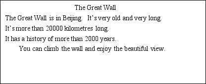 (2)请你把自己出游照片贴在空白处,并根据照片回答问题。  Where did you go? When did you go? ________________. ________________. What did you do? How was your trip? ________________. ________________. 2. 综合拓展类作业(选做): 1.在看了课上的旅行信息之后,你有没有对哪个景点特别的感兴趣呢?请通过查阅书本、网络等方式查找相关信息,收集相关资料。 如:The Great Wall/in Beijing/more than 20000 kilometres long/more than 2000 years 将以上收集来的信息制作成一份信息卡,送给朋友作为旅行指南。