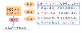 展示学生作品。 小结:在读数的时候,要大写,写数的时候,要小写。读数和写数都要从高位起。 2.教学中间有0和末尾有0的数的读作与写作 你能根据刚才所学的知识,在学习单上完成下面的练习吗?