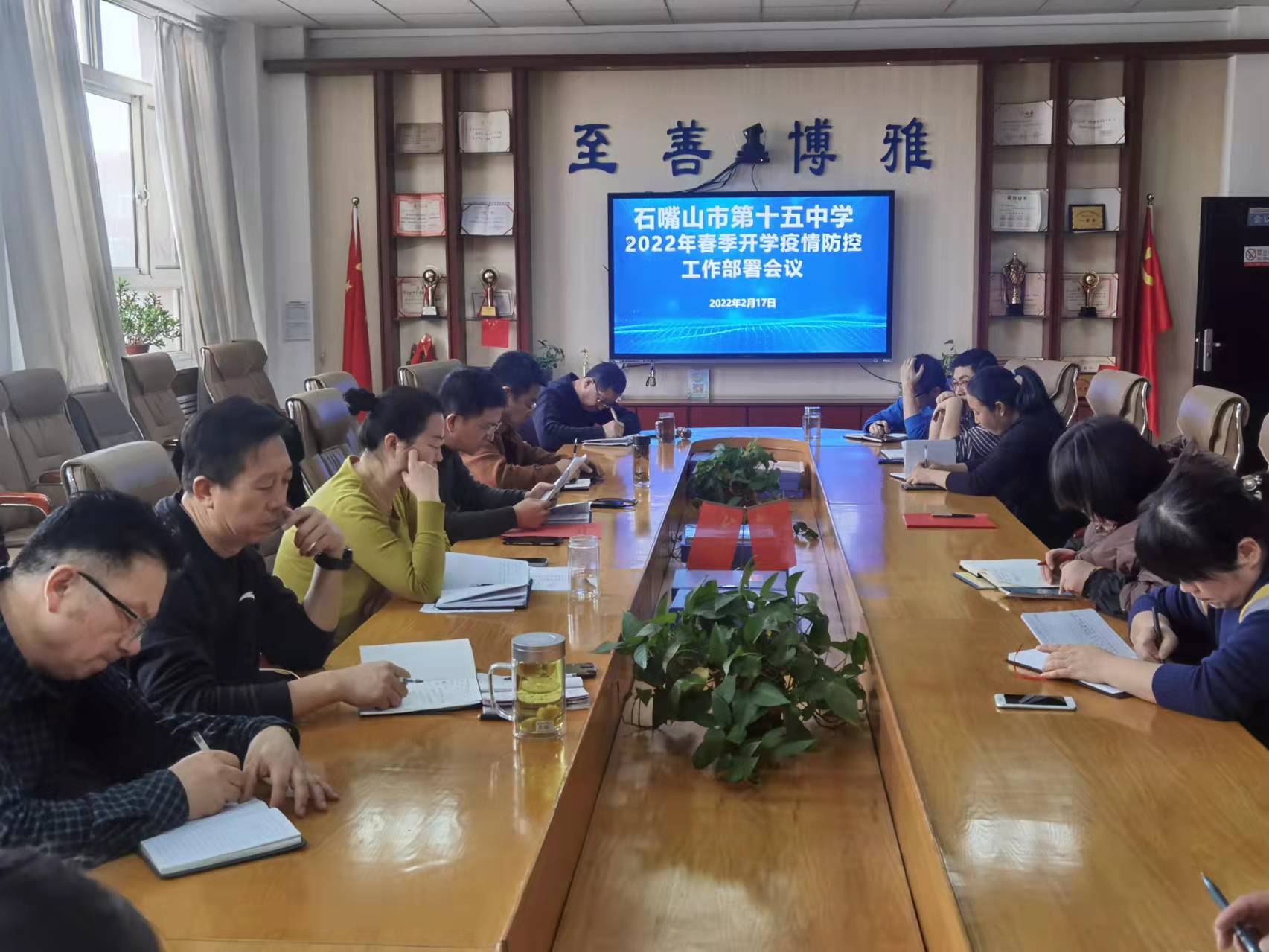 为严格执行《自治区新冠肺炎疫情工作指挥部关于做好今冬明春疫情防控工作的通知》(宁疫指发〔2021〕31号)、《中小学校、托幼机构新冠肺炎疫情防控技术方案(第四版)》的要求,为进一步做好疫情防控工作,增强全校师生应对突发疫情的防范意识,提高应急处置和疫情防控能力,确保开学工作平稳有序进行, 2月17日上午,石嘴山市第十五学召开了2022年春季开学疫情防控部署会议。
