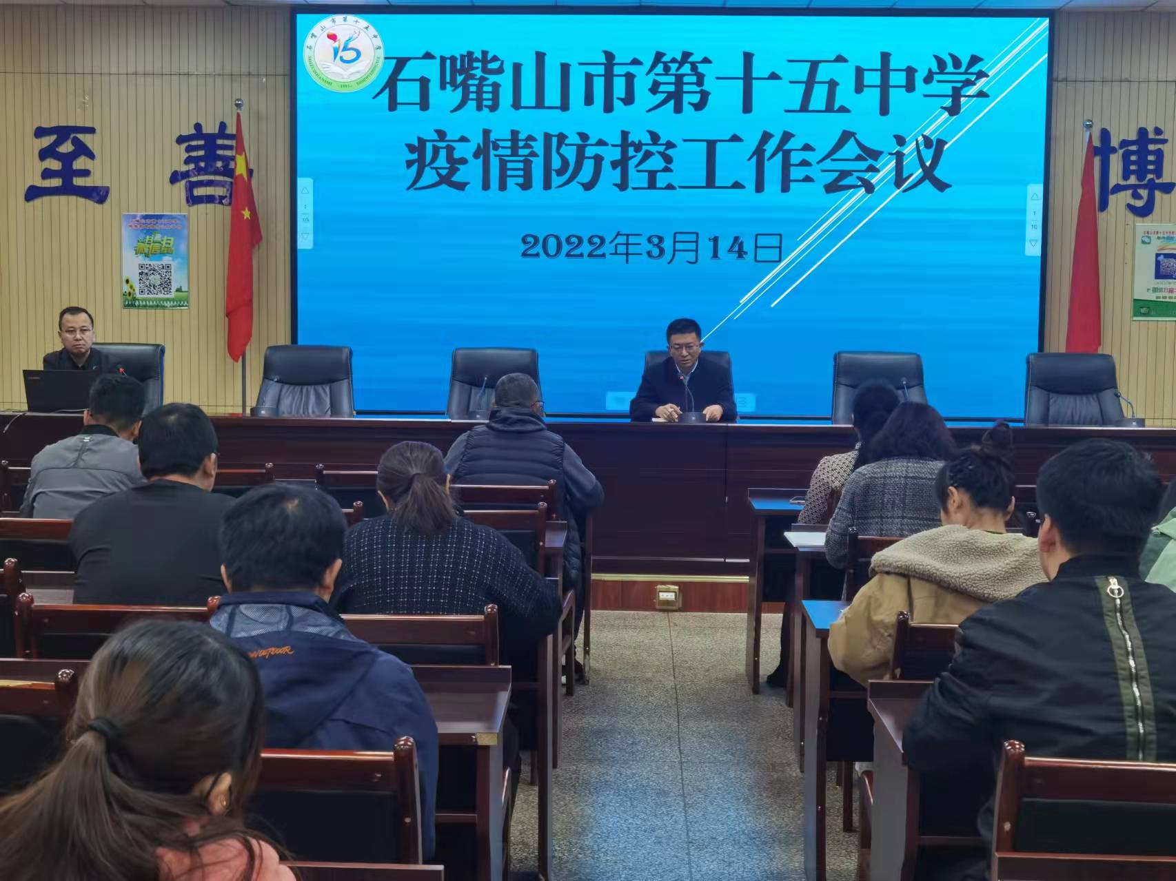 为全面做好校园新冠肺炎疫情防控工作,坚持“外防输入、内防反弹”的总体防控策略,强化责任担当,抓好常态化条件下学校疫情防控工作,防止疫情在校园扩散,2022年3月14日早上8点钟,石嘴山市第十五中学紧急召开疫情防控工作会议。