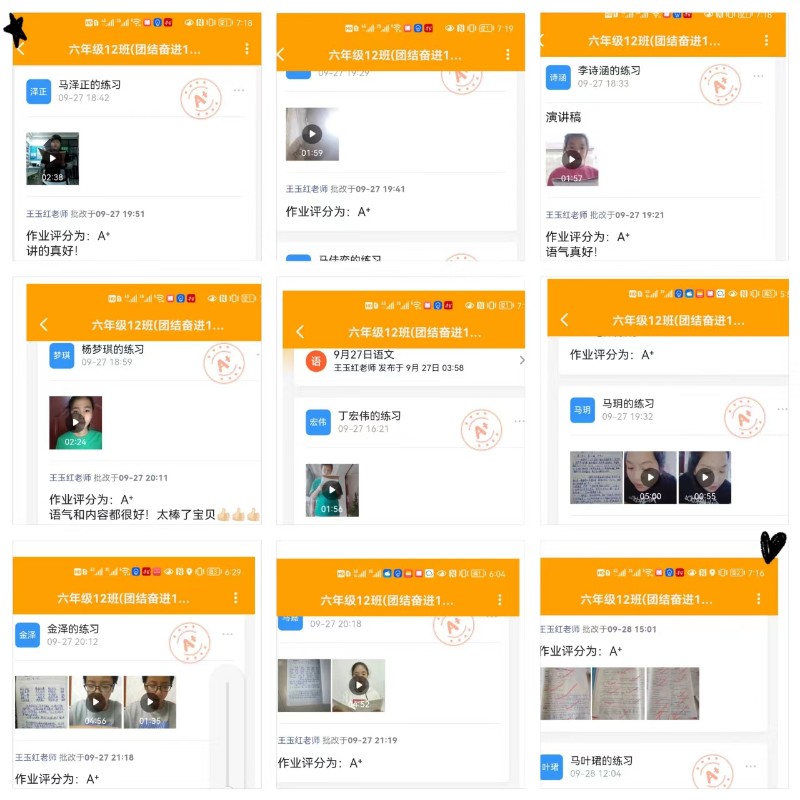 学生学习兴趣浓厚,在线上晒出了许多佳作,有学习感悟、实验视频、手工制作等等,每天的作业准时提交。老师的作业批改及时细致,点赞点评互动交流,批改评语妙趣横生,别有新意,给学生和家长留下深刻印象。