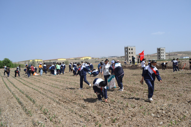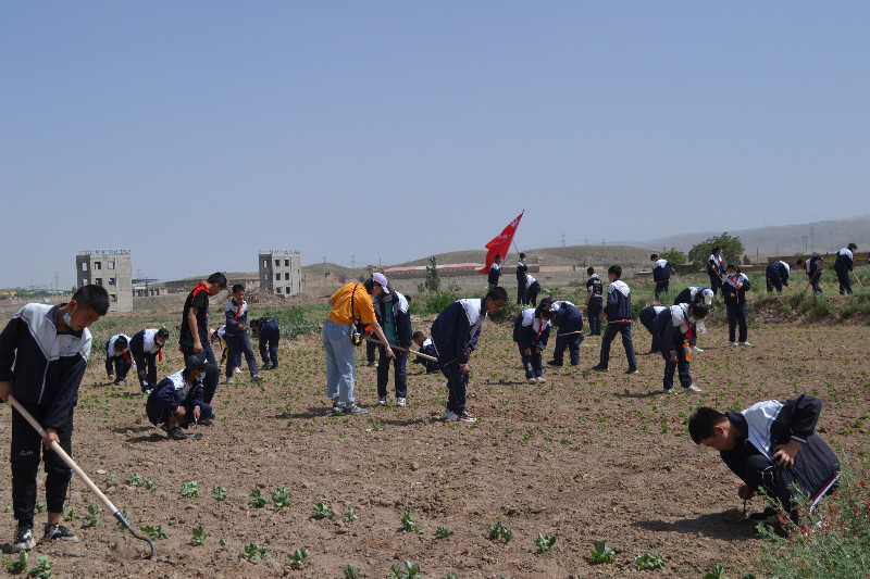 为了实现“教育即生活”“社会即学校”“教学做合一”的活动目标,致力于培育学生的劳动观念,在劳动中体验生活的乐趣,让学生获得持续创造好生活的能力,依托劳动教育,引导学生掌握劳动技能,提升劳动素养,充分利用学校劳动教育实践基地,让学生学会劳动,尊重劳动,主动参与劳动,将“劳动最光荣”的理念植根于内心的思想认识,理想信念中,内化形成“劳体强身”的自觉行动,懂得幸福生活建基于辛勤劳动之上,牢固树立正确的人生观和价值观,使学生健康学习,快乐生活,做一个对社会、家庭有用的人。青铜峡市三中于2021年5月27日组织七年级师生90人到学校劳动教育实践基地认真开展了“劳体强身”劳动教育社会实践活动。