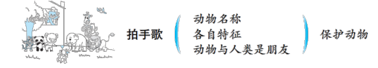 设计说明 | 本课通过儿歌向学生介绍了各种动物的名称及其特征,生动形象地展示了新奇的动物世界。学生在学习课文的过程中识字,同时了解动物的信息,明白动物与人类是朋友,树立保护动物的重要意识。 |