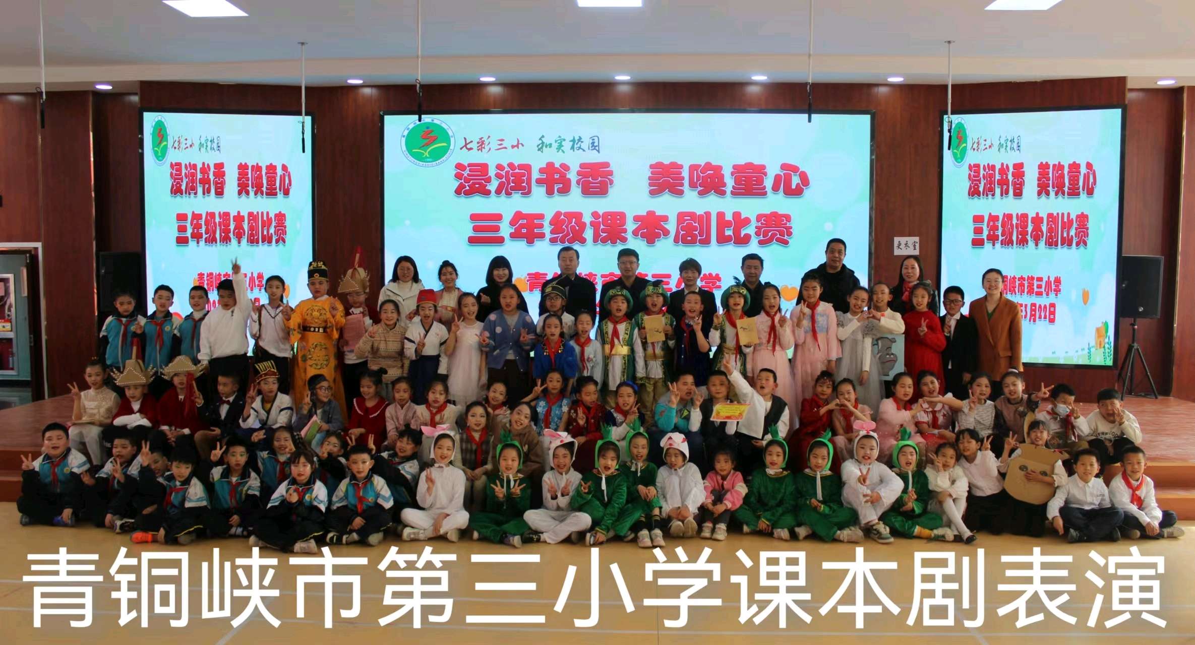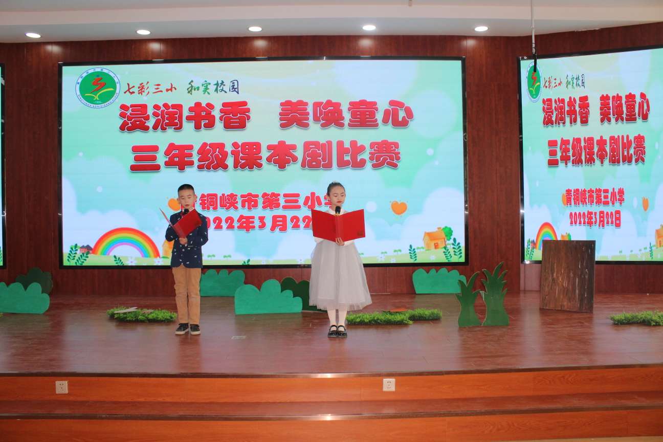 “给我一个舞台,还你一片精彩”,3月22日下午,青铜峡市第三小学举办课本剧比赛,三年级五个班的孩子们一一登台,一个个魅力剧本,一片片精彩绽放。