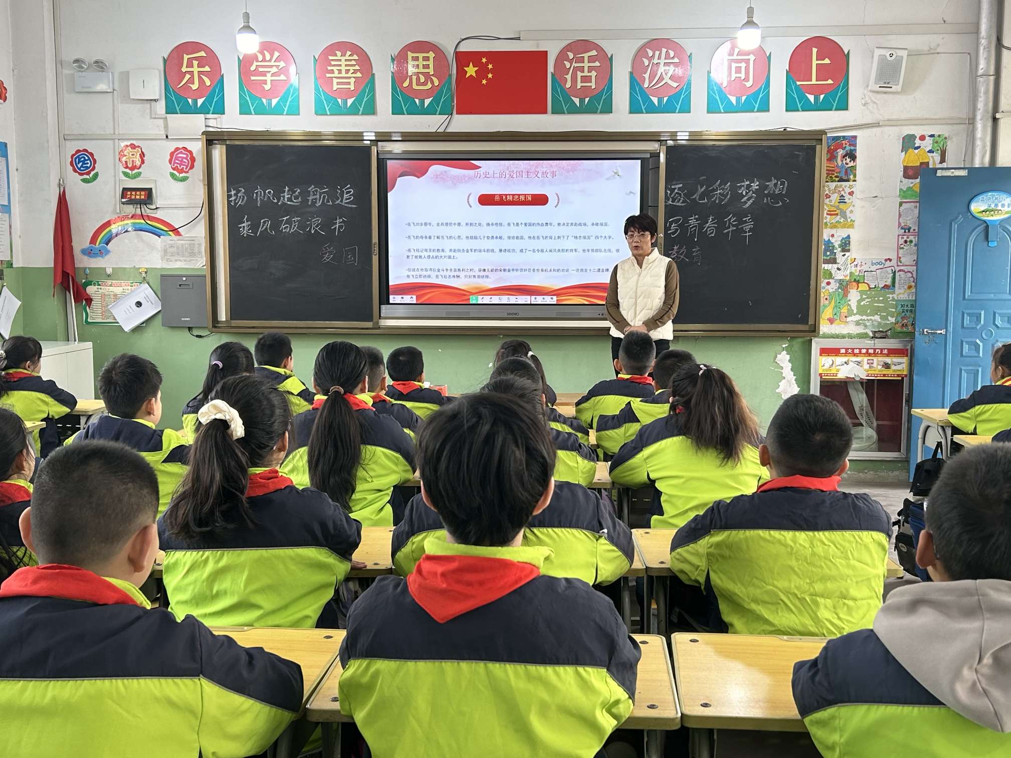 典礼结束,全体师生共同开启“扬帆起航追逐七彩梦想,乘风破浪书写青春华章—爱国主义教育”。学生通过诗歌朗诵等形式,生动演绎了“黑夜深深,星火燎原”的革命历史故事,展现了新时代青年“以勤问心、以志为路”的奋斗精神。