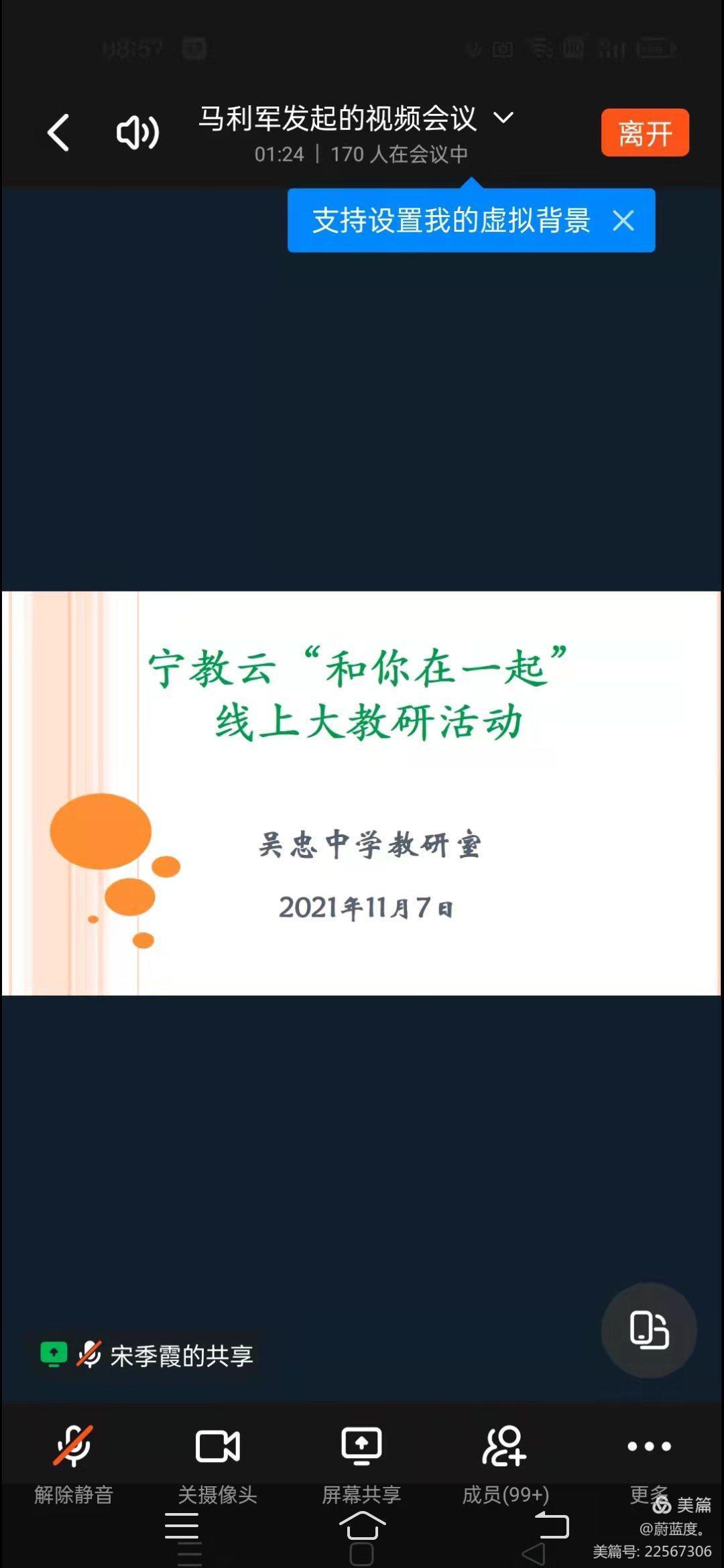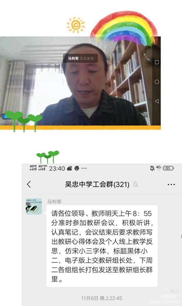 为扎实落实吴忠市教研室《关于组织开展线上教学“和你在一起”校本教研大讨论活动的通知》文件精神,切实做好在线教育、教学、教研工作的有效开展,交流优秀经验,提升教师在线教育教学能力,以期真正做到“停课不停教,线上不减质”,11月7日吴忠中学组织召开了“和你在一起”线上大教研活动。