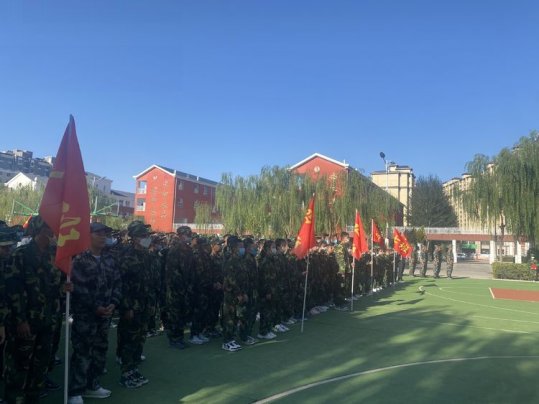 千年秦水聚才俊,乃光湖畔创辉煌。在这个硕果飘香的金秋时节,吴忠市第六中学又迎来了一批莘莘学子。为了培养学生的爱国意识,磨炼他们的意志,加强他们的组织纪律性,我校特开展2022级新生国防教育活动,在学校升旗台小广场举行了七年级新生军训开营仪式。