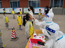 检测现场分为排队等候区、缓冲区、采样区、撤离区四个功能区。孩子们在老师的指引下,佩戴好口罩,保持1米间距,分组有序完成体温检测、身份验证、咽拭子采样等一系列流程。
