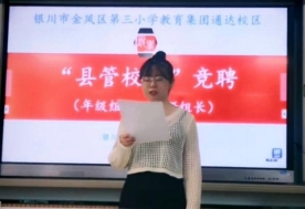 第四位上场的是杨琴老师,竞聘的是四年级年级组长。杨老师认为,作为年级组的带头人,高度的责任感是做好工作的先决条件。要有集体观念,在个人利益与学校工作冲突时,要全力支持学校工作。率先垂范,无私奉献,同时还要培养亲和力,要服务每位教师,在人格上尊重教师,心理上接受教师,感情上亲近教师,工作中要以身作则,注重身教,工作勤奋,任劳任怨。