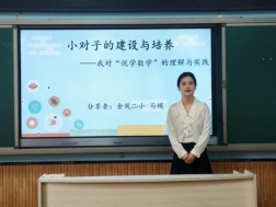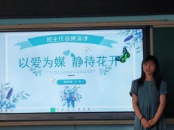 第二个上台的是曹艳老师,曹艳老师认为班主任是学校教育的核心,班主任的工作关系着一个班级的教学质量,一举一动深刻地影响着学生。班主任的工作是辛苦的,是有责任的,但同时又充满着幸福感。作为一名参加工作不久的教师,她想成为一名班主任,更想成为一名优秀的班主任。