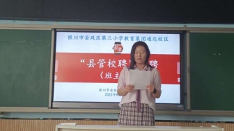 第二个上台的是詹宁老师,詹老师认为作为班主任,不仅仅是一名教师,更是一名管理者和领导者。需要富有爱心、责任感和耐心,更需要关注每个学生的学习、生活和成长。如果詹老师能够得到大家的认可,成功竞聘班主任岗位,她将以课堂纪律、德育工作、家校合作等三个方面全力以赴做好班主任工作。