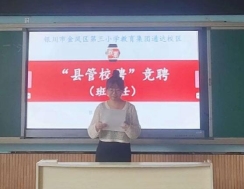 上台竞聘的是段思宇老师,段老师立志做一名优秀班主任,她积极地参加各项专业培训和教研活动,也在领导的指导建议下,不断打磨着自己的数学课堂。同时为了让自己的班级管理能力提高,会阅读相关书籍,向有经验的教师请教,也学到许多与同学们相处的小妙招。在今后的日子段老师会努力做一名教育行动者。