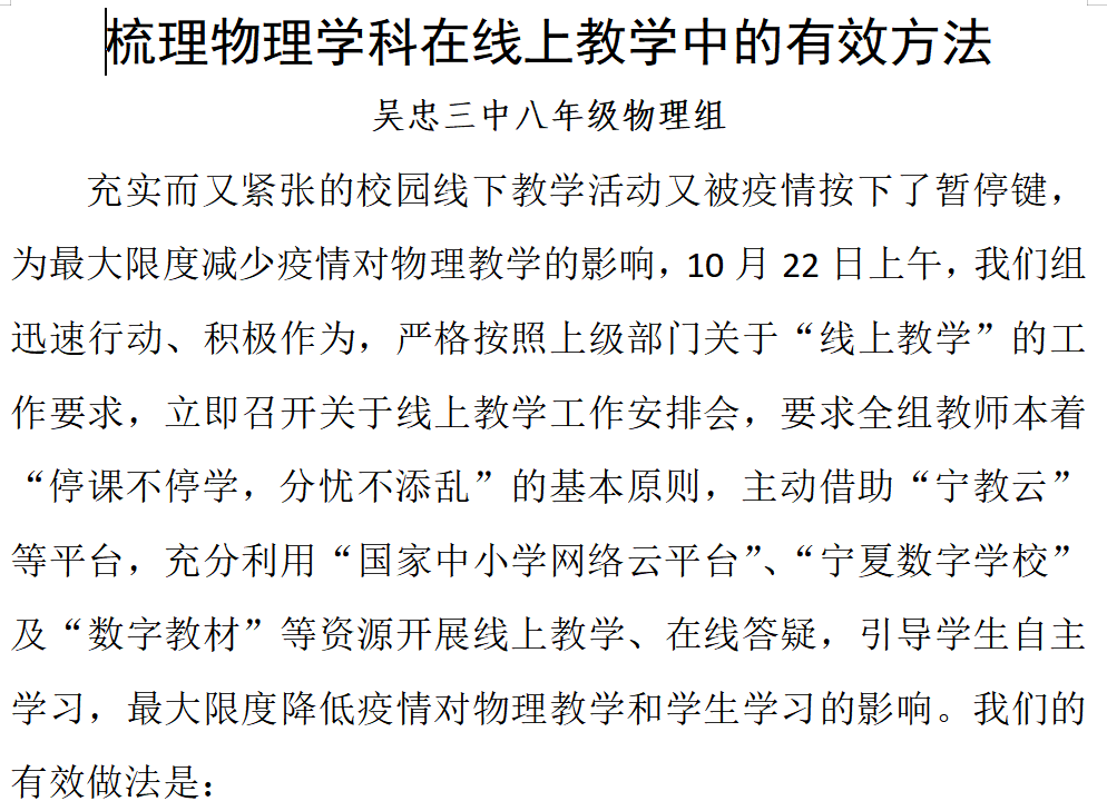 真教研 提效率 显温度:各教研组线上会议结束后,教务处又组织教研组长召开线上教学研讨会,教师代表、各年级部长对线上教学的开展情况进行了详细的汇报,并列举了老师们开展教学活动中遇到的具体困难,大家共同探讨策略并提出了解决的办法。吴忠市教育局教研室生物教研员杜月兰老师参加了会议,在肯定学校线上教学工作的同时,也提出了一些宝贵的意见。