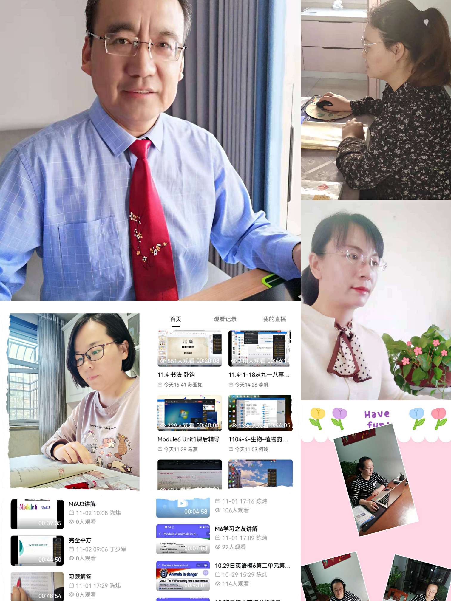 深交流 筛内容 展风采:各年级部按照学校线上教研要求认真贯彻落实“和你在一起”大讨论活动。以教研组为单位,召开了教研组会议,教师都积极参加,认真学习,掌握了线上教学的基本能力。各组组长针对本组的实际情况,就课时进度、授课教师安排、作业、授课方式等都进行了详密的安排。各年级部所有教学直播课都非常好,深得学生和家长的喜爱。