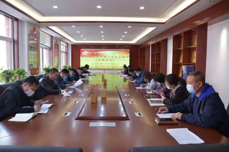 2021年11月18日上午,吴忠市第三中学党总支召开会议,认真学习传达党的十九届六中全会精神。学校党总支领导班子成员参加会议,各党支部书记、委员、中层干部列席会议。校党总支书记、校长马云飞主持会议并讲话。