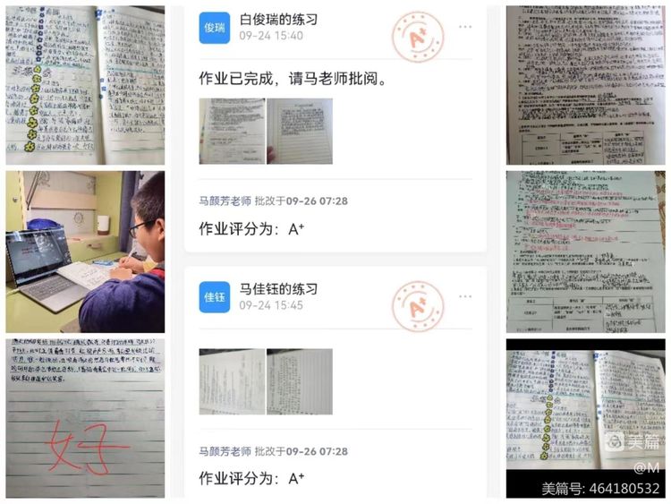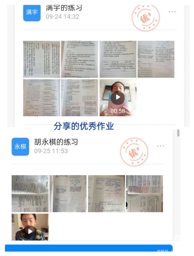 学生们上课认真聆听,下课积极的完成老师布置的作业,上传作业照片,让每一次学习都留下自己的印记,学有所思、学有所获。