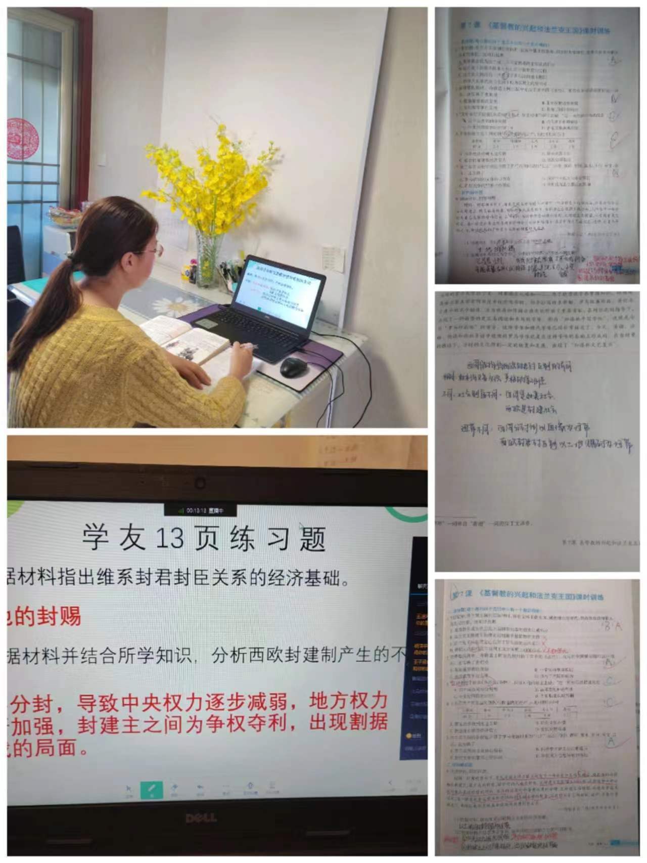 历史陈玲老师干练稳健,组织组内成员集体备课,统一教学进度,认真落实线上教学,结合实际,加强学生的爱国主义情感教育。课下通过QQ微信等各种方式与学生及时沟通,答疑解惑,为同学们的学习提供强有力的保障,真正做到“停课不停学”。在她的带领下,历史组教师用实际行动,诠释“笃行躬行”,用敬业与智慧为学生保驾护航,共克时艰,战胜疫情。
