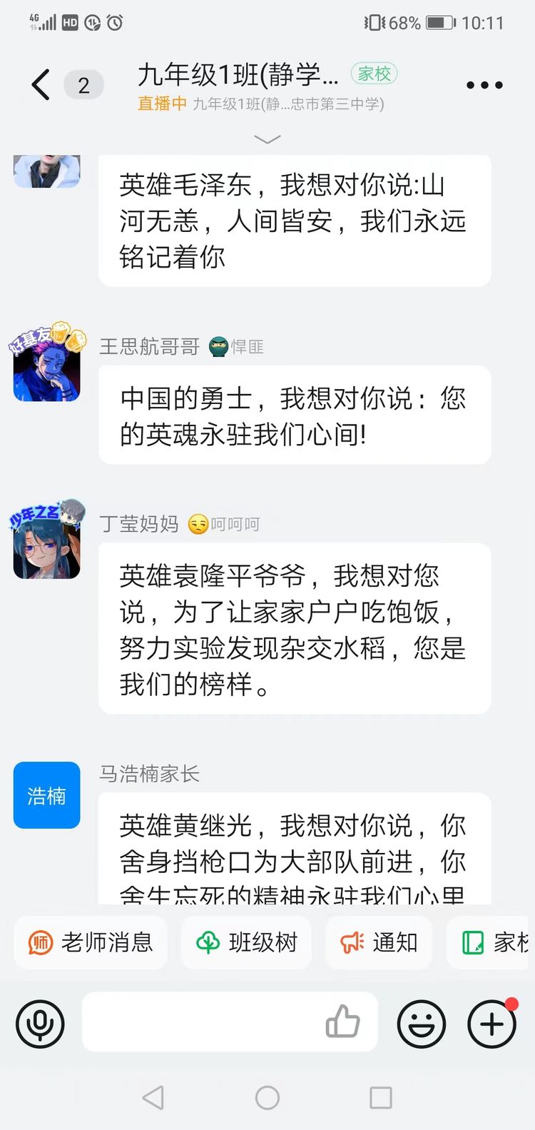 随着庄严的国歌,同学们纷纷面向国旗行礼。会后在线上参与了烈士祭扫活动,向革命先烈表达敬意和缅怀之情。同时,同学们进行了“英雄......,我想对您说......”文字祭奠活动。通过主题升旗活动,教育同学们追寻英雄足迹,传承红色基因,忠实履行新时代的使命任务,在青春的赛道上奋力奔跑,用知识武装头脑,为祖国的未来贡献力量。
