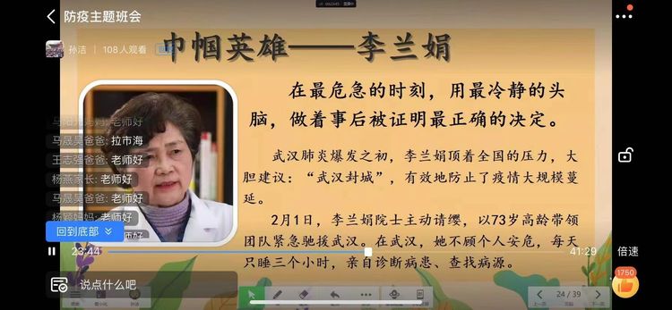 目前,我市正全力打好疫情防控扫尾清零攻坚战,为防患于未然,应对部分学生焦躁的情绪,10月10日,各班开展了“普及防疫知识 弘扬抗疫精神”主题班队会。在老师的带领下,学生和家长再次学习了新冠肺炎的基本常识,传播途径、易感染人群、防控知识,以及抗疫英雄故事,弘扬抗疫精神。