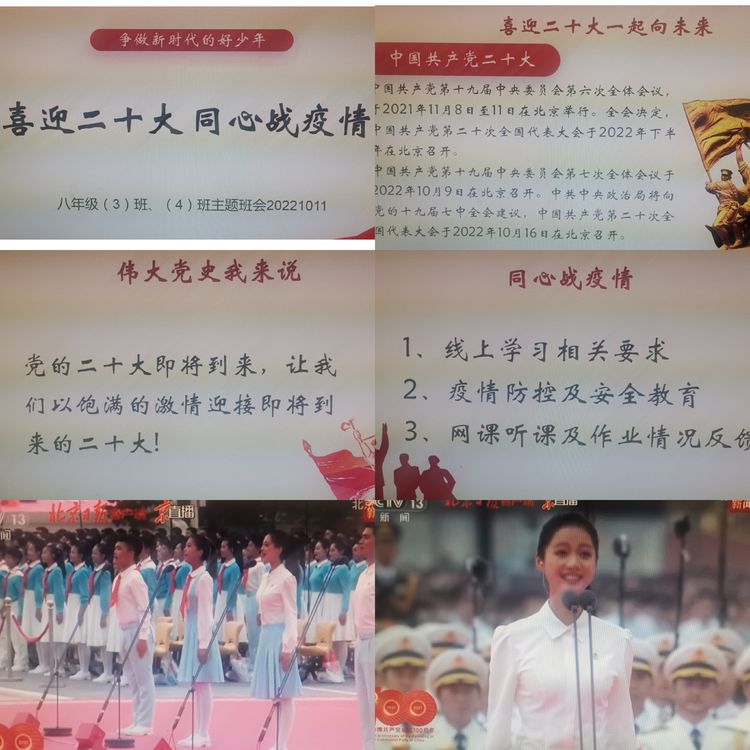 10月10日,各少先中队开展了主题班队会。辅导员们带领少先队员重温党史,了解二十大的相关知识,引导队员们在疫情期间也要树立正确的价值观念,不断提升身体素质和科学文化知识,用知识武装头脑,明确目标,以优异的成绩迎接党的二十大胜利召开!