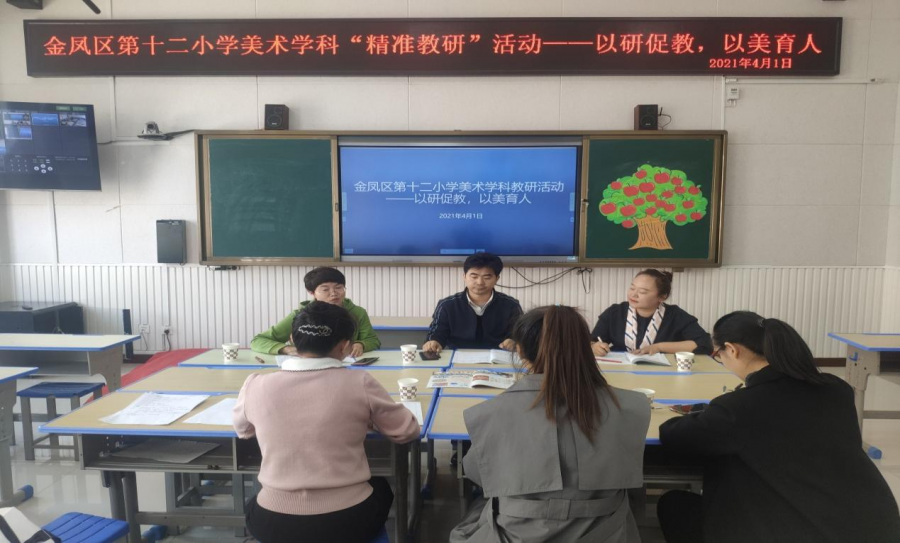为了进一步深化课堂教学改革,培养学生对美术学习的持久兴趣,提高我校美术教师的业务水平。银川市金凤区第十二小学美术学科于2021年4月1日上午如期开展了以“以研促教,以美育人”为主题的教研活动。金凤区美术教研员武建川老师莅临我校听课指导。