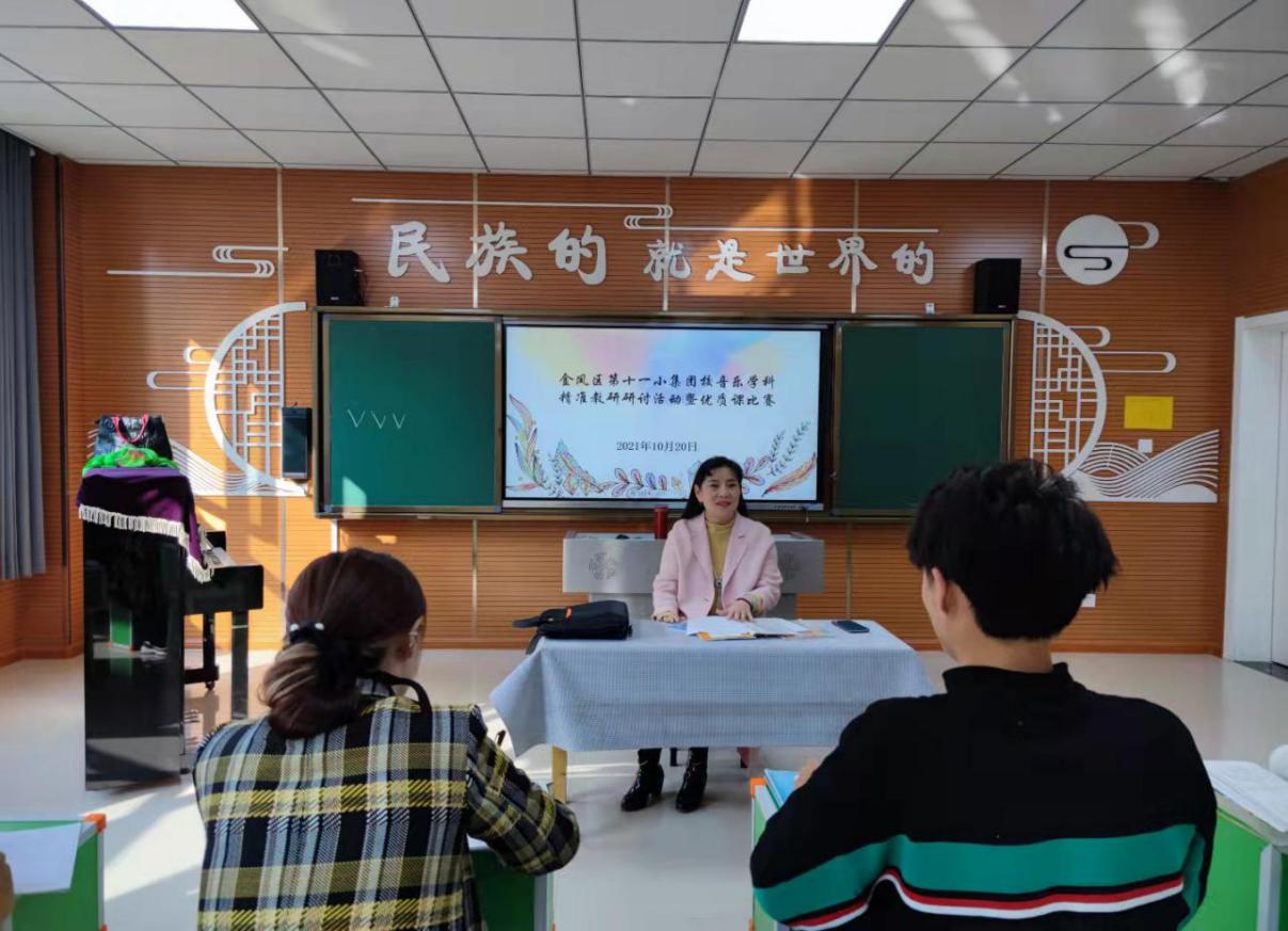 为推动教师教学方式变革与学生学习方式变革,加大骨干教师对青年教师的指导和培养力度,金凤区第十一小集团校于10月20日开展音乐学科精准教研活动。此次活动邀请了金凤区音乐教研员赵嘉琪老师进行点评指导,集团校领导全程参与活动,金风十一小集团校全体音乐教师受益匪浅。